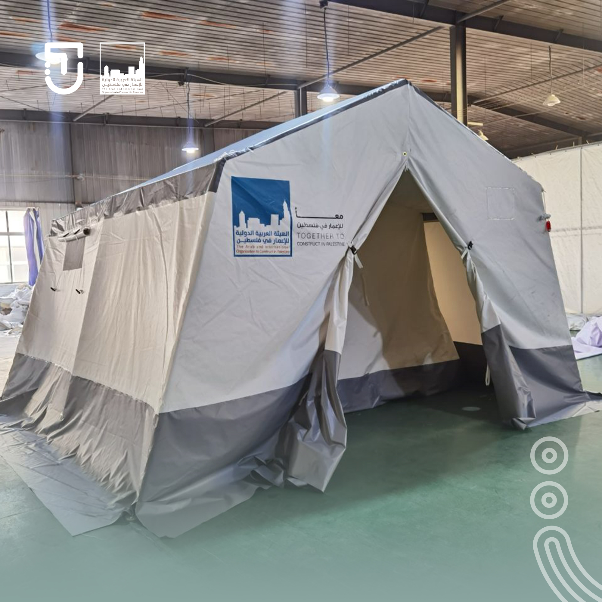 وللمساهمة في تلبية الحاجة الملحة إلى إيواء عاجل أطلقت الهيئة العربية الدولية للإعمار في فلسطين بالتعاون مع منصة تشاركي للتمويل الجماعي مشروع "توفير خيام إيواء للنازحين في غزة" بمواصفات فنية عالية تحمي من البرد والمطر ومقاومة للحريق (مساحة الخيمة 16 متر مربع)، وسريعة التركيب، وتكلفة الخيمة الواحدة 600 دولا أمريكي.